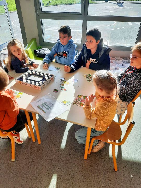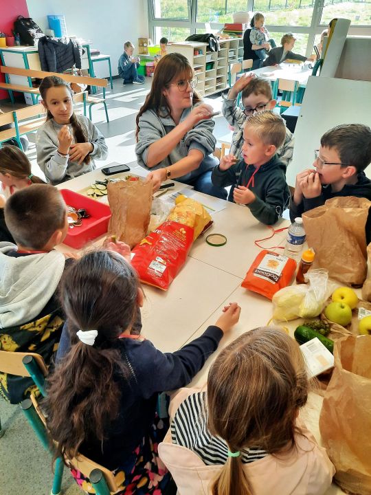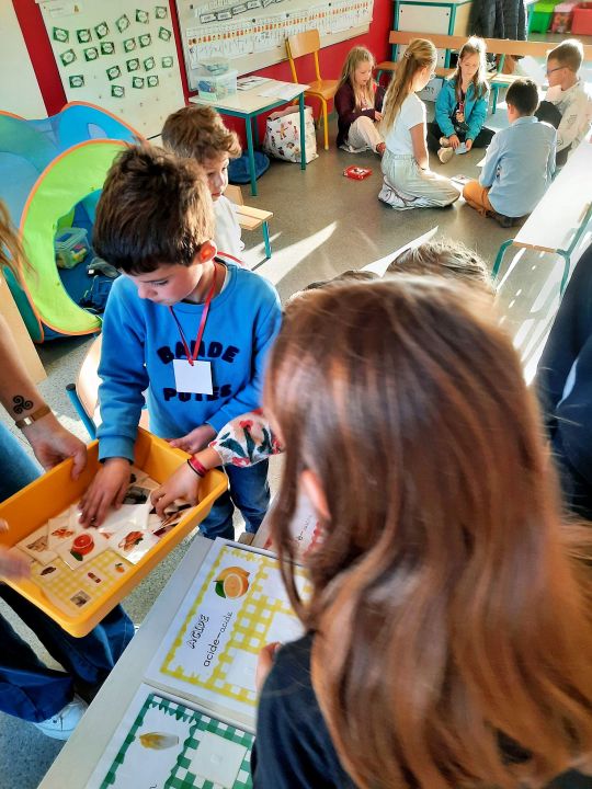 Dans le cadre de la semaine du goût, aujourd'hui nous avons laissé les cartables pour apprendre autrement. 10 ateliers : sentir, toucher, gouter, trier, jouer, créer, cuisiner, collaborer,...étaient proposés du plus jeune au plus grand sur toute la journée. Merci aux parents par leur présence et collaboration (envoi de denrées) et à toute l'équipe pour la préparation de cette journée. Les enfants sont ravis de cette dernière journée avant les vacances.